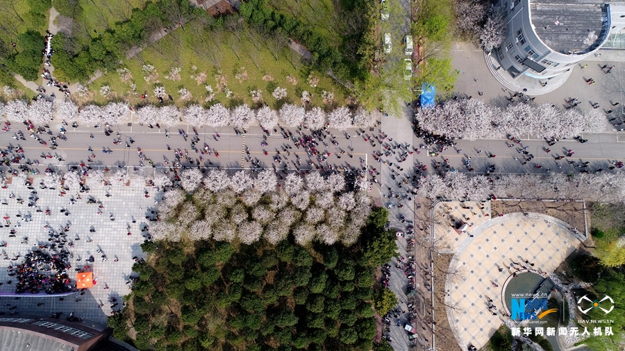 3月25日航拍的bet36体育在线樱花大道樱花绽放如雪。