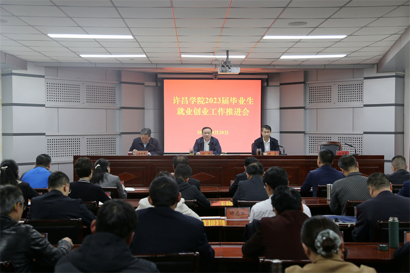 郭涛在会议上讲话。他指出,今年是全面落实党的二十大精神开局之年,是全面建设社会主义现代化国家新征程起步之年,确保高校毕业生就业稳定具有特殊的重要意义。他强调,一是要深入学习贯彻党的二十大精神,切实增强做好毕业生就业工作的责任感、紧迫感。要站在讲政治的高度、保民生的全局和学校事业发展的大局全力促就业。二是要保持清醒认识,充分把握当前毕业生就业工作面临的新形势新任务。要以“时不我待、只争朝夕”的紧迫感和“时时放心不下”的责任感,用心用情用力做好毕业生就业工作。三是要夯实扛牢责任,全力推进2023届毕业生高质量充分就业。要进一步深化“一把手”工程,强化毕业生就业工作主体责任;要聚焦目标任务,做好不断线就业服务工作;要兜住兜牢底线,深入细致开展困难群体帮扶,全力确保学校毕业生就业任务目标完成。