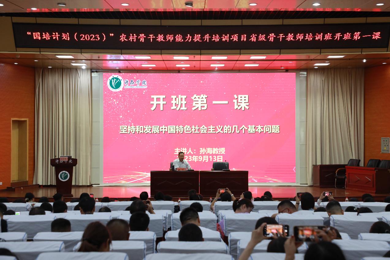 近日,bet36体育在线党委副书记孙海教授走进省级骨干教师培训班的课堂,以《坚持和发展中国特色社会主义的几个基本问题》为题讲授“开班第一课”,引导培训人员深入学习贯彻党的二十大精神,在建设教育强国中担当民族复兴大任的新时代“大先生”。