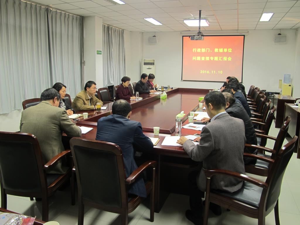 为进一步深挖问题,切实制定好整改措施,确保巡视整改工作取得实效,11月10日,学校组织召开了行政机关和教辅单位问题查摆专题汇报会,院长赵继红,党委副书记马超,副院长赵正风、郑直、崔斌、黄怡俐,纪委书记罗凤英出席会议。行政机关部门及教辅单位主要负责人参加会议。