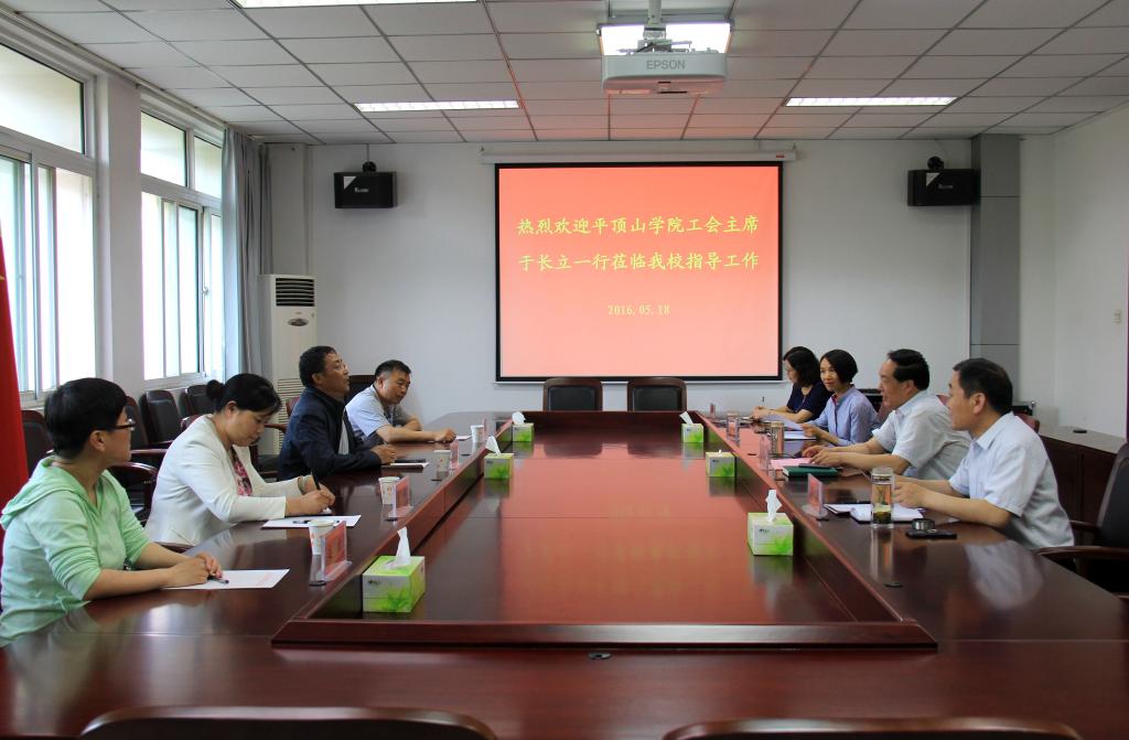 5月18日,平顶山学院工会主席于长立一行来bet36体育在线交流考察。校工会主席杜志傲和校工会相关工作人员在办公楼第四会议室与来访客人进行了座谈交流。座谈会由杜志傲主席主持。