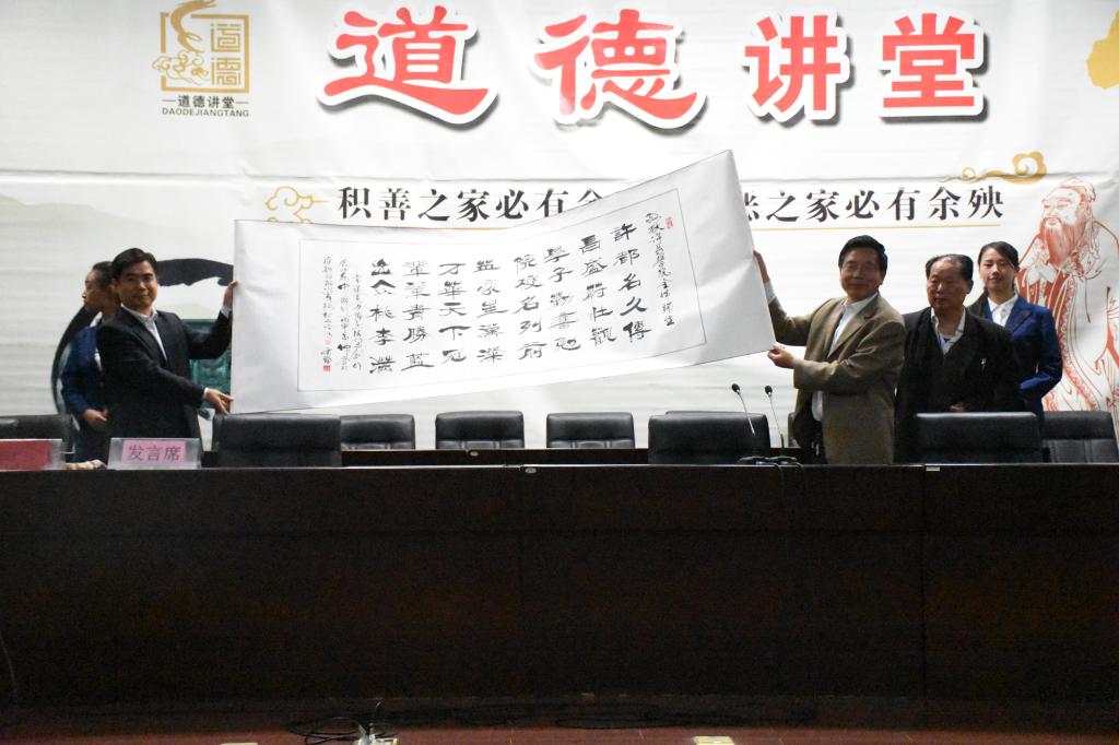 本次活动分为“听一首歌、看一段短片、听一段讲座、谈一番感悟、送一份吉祥”五个环节。在看过短片之后,许昌瑞贝卡污水净化公司生产副经理李自勋围绕着当代水污染的现状以及怎么治理污水为大家带来“水环境的污染与治理”的讲座,号召大家一同保护水资源。针对学生现场提问关于水污染治理的问题,李自勋经理耐心解释。许昌广播电视台文娱频道总监、中国艺术促进会理事杨松山老师呼吁大家珍惜爱护水资源,树立节水环保意思,发扬节水的生态道德,牢固树立生态道德教育。杨老师还特地为本次活动作诗一首,送给母校一份美好的祝福。著名书法家、现中国文化艺术协会会长常遂炎老师现场挥毫题字。
