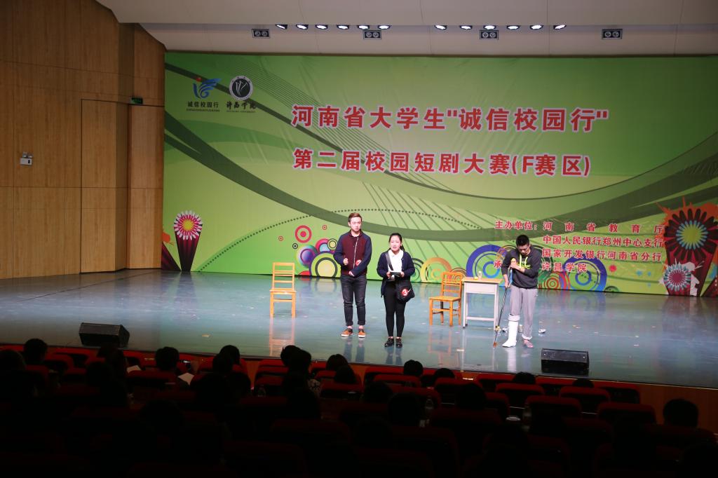 本届比赛由河南省教育厅、中国人民银行郑州中心支行、国家开发银行股份有限公司河南分行共同主办,比赛主题是“诚信舞台 演绎青春”。上午8时,本次短剧大赛在河南农业职业学院选送的《诚作本 爱为根》的演出中正式拉开帷幕。郑州轻工业学院、河南农业大学、bet36体育在线、郑州航空工业管理学院等高校先后登台演出。经过一天的激烈角逐,bet36体育在线的《彼岸花》、《女生宿舍》等五部作品获得一等奖,郑州航空工业管理学院的《“贷”来希望》等六部作品获得二等奖,郑州科技学院的《诚实的魔镜》等七部作品获得三等奖。本次大赛还评选出了最佳男女演员奖、优秀导演奖、最佳舞台效果奖以及最佳指导老师奖。其中,bet36体育在线指导老师刘毅飞、訾冉获得最佳指导教师奖,bet36体育在线学生霍斌琪获得最佳男演员奖,音乐舞蹈学院选送的参赛作品《彼岸花》获得最佳舞台效果奖。