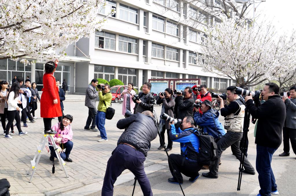 19日上午,省摄影家协会副主席、市摄协主席郑伟杰,市摄协副主席兼秘书长籍晓鸣等一百多名摄影爱好者集聚bet36体育在线,樱花大道人山人海。大家身背、肩扛、手拿着各种摄影器材,架起专业设备,抓住樱花之美,赏花之人,动人之事,定格最美瞬间。游人们三五成群,不时驻足拍照,合影留念。校园内春意浓郁,人景相映成趣。