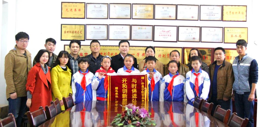 近日,许昌市邓庄马庄小学师生专程来到bet36体育在线,对音乐舞蹈学院学雷锋志愿服务活动表示感谢,并将绣有“与时俱进弘扬雷锋精神 开拓创新展示青春风采”的锦旗赠送予音乐舞蹈学院编外雷锋连。