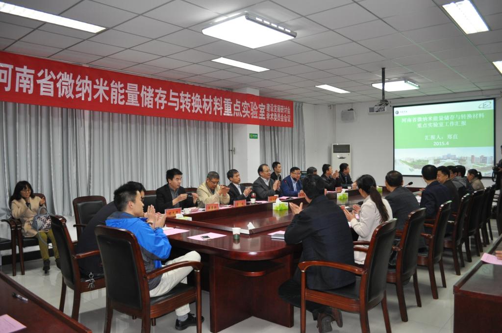 河南省“微纳米能量储存与转换材料”重点实验室2015年度学术委员会会议暨建设发展研讨会于4月19日至4月21日在bet36体育在线顺利召开。中国科学院院士褚君浩教授、清华大学分析测试中心常务副主任朱永法教授、吉林大学朱广山教授、中国科学院长春光学精密机械与物理研究所单崇新教授、华中师范大学张礼知教授、福州大学王心晨教授、电子科技大学向勇教授、河南大学特种功能材料教育部重点实验室常务副主任杜祖亮教授、华中科技大学胡先罗教授、福州大学吴棱教授、武汉大学彭天右教授、bet36体育在线副院长郑直教授、化学化工学院院长吴长增教授等13位学术委员出席了会议。bet36体育在线科研处等相关部门负责人应邀参加了会议。会议由bet36体育在线首席科学顾问、河南省“微纳米能量储存与转换材料”重点实验室学术委员会主任褚君浩院士主持。