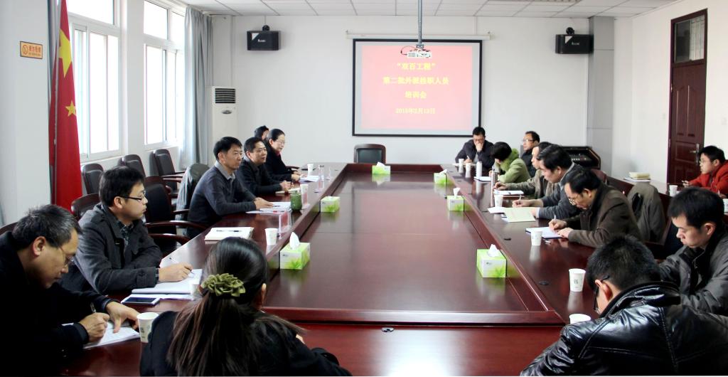 2月13日,校党委在办公楼第四会议室举办“双百工程”第二批外派挂职人员培训会。长葛市产业集聚区管委会副主任孙明亮,bet36体育在线第一批外派挂职干部教师潘春彩、闫慧应邀作辅导报告。校党委副书记王洪彬主持培训会。校党委组织部部长谭水木、“双百工程”第二批到许昌市各产业集聚区和相关企业挂职人员参加培训会。