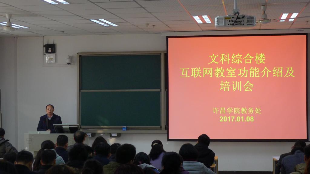 培训会现场向参会人员发放了教务处编写印制的《文科综合楼(E楼)互联网教室使用手册》。培训会上,教务处周颖杰处长从当前教育信息化发展的趋势、互联网对高等教育的影响和作用等方面,强调了将互联网技术应用于课堂教学的作用和意义,并鼓励教师掌握和运用现代信息技术,不断提高教学质量。教务处副处长殷志锋介绍了文科综合楼教室的类型、分布、座位数等情况,并讲解了互联网教室的使用流程和注意事项。教务处冯建成老师还就互联网教室设备的操作方法进行了现场演示。