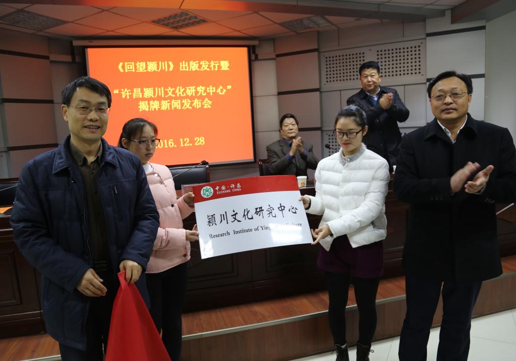 与会领导向许昌颍川文化研究中心的研究人员分别赠送新书《回望颍川》,许昌市委常委、统战部部长刘保新和bet36体育在线副院长郑直共同为“许昌颍川文化研究中心”揭牌。