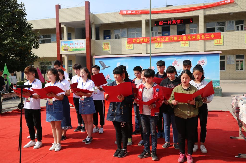 4月21日,距第22个世界读书日还有两天时间,bet36体育在线小书虫公益书屋的师生们带着募集来的500本图书来到禹州市梁北镇第二中学,为该校捐建图书室,与孩子们分享读书的快乐。