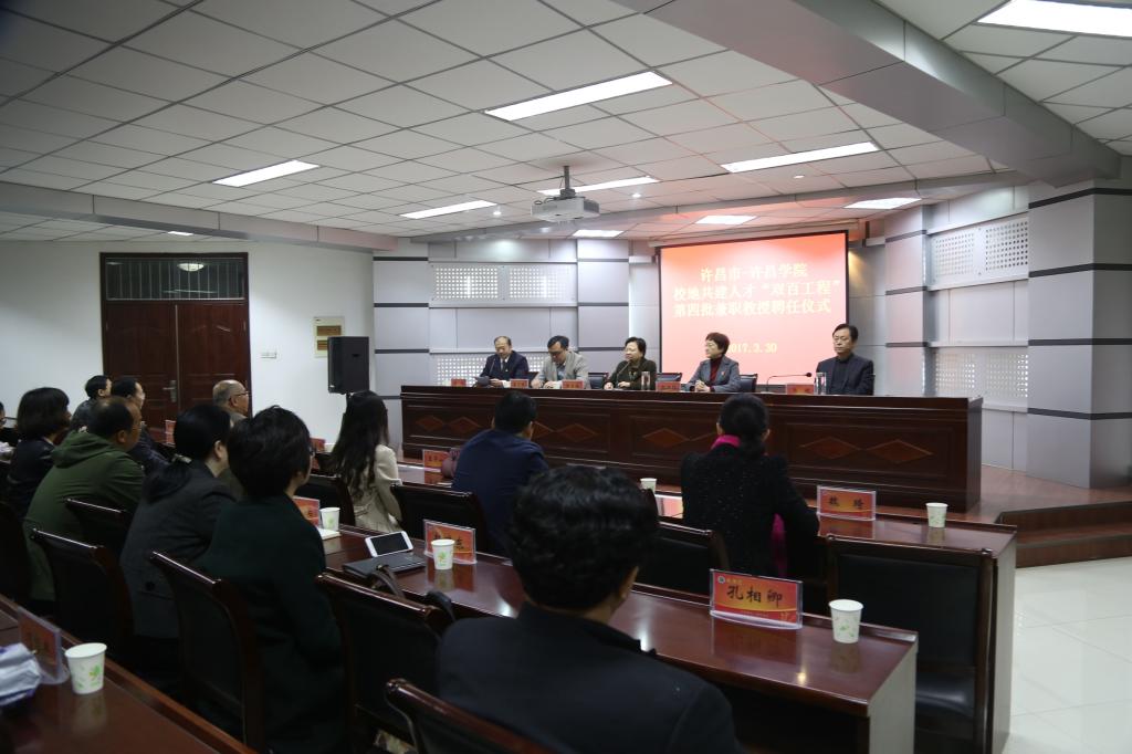 会上,许昌市委人才办主任吕玉峰宣布了校地共建人才“双百工程”第四批兼职教授人员名单。