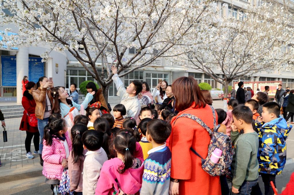 樱花烂漫几多时,柳绿桃红两未知。白色的樱花瓣点缀枝头,教学楼掩映在层层叠叠的花枝里——次第盛开的樱花将bet36体育在线点缀得春意盎然。游客闻香而来,沉浸于许院美景。
