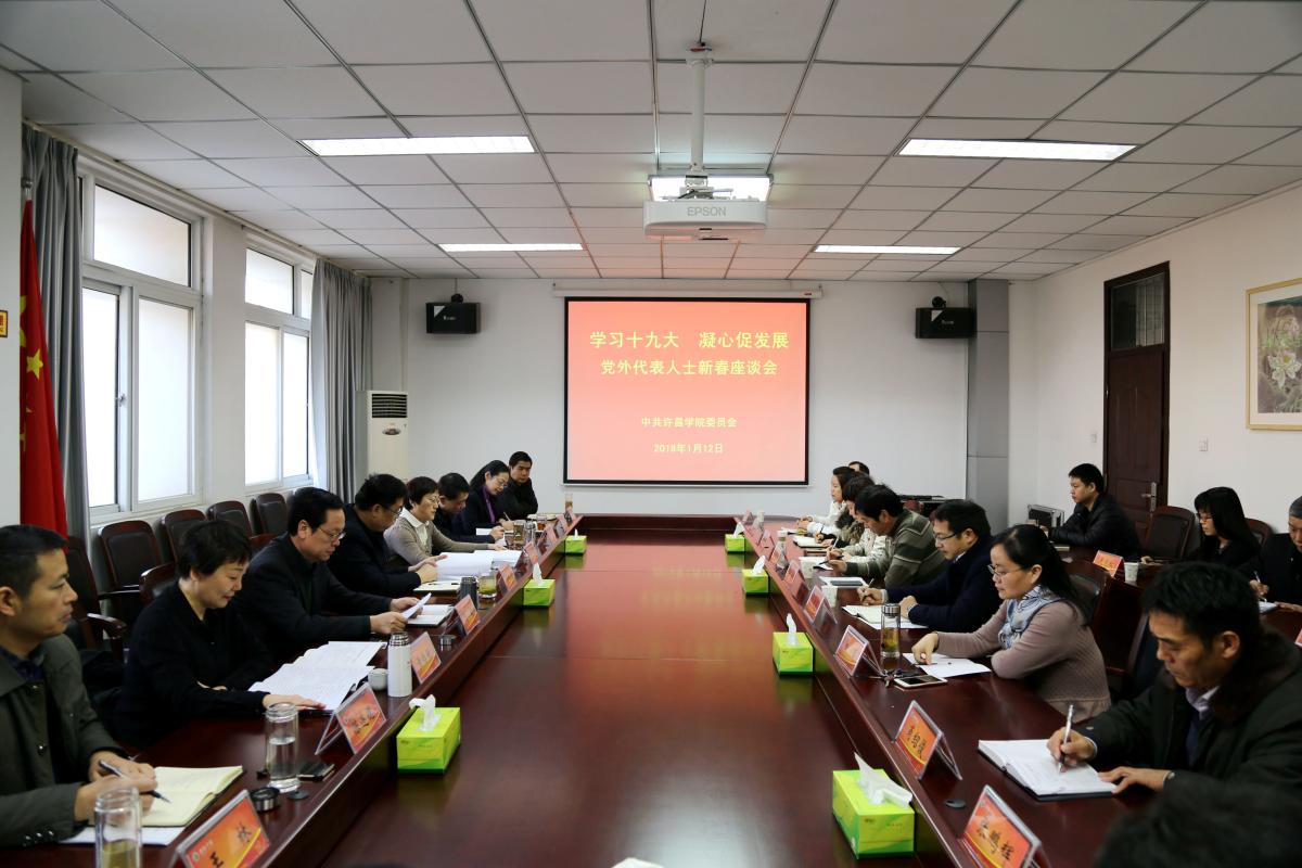 1月12日上午,bet36体育在线在第四会议室召开“学习十九大 凝心促发展”党外代表人士新春座谈会。校党委书记闫纪建、院长赵继红出席会议,党委副书记马超主持会议。副院长、九三学社中央委员郑直,副院长、河南省党外知识分子联谊会第一届理事会常务理事、无党派代表人士黄怡俐和其他部分党外人士代表、学校统战工作领导小组成员单位主要负责人参加会议。
