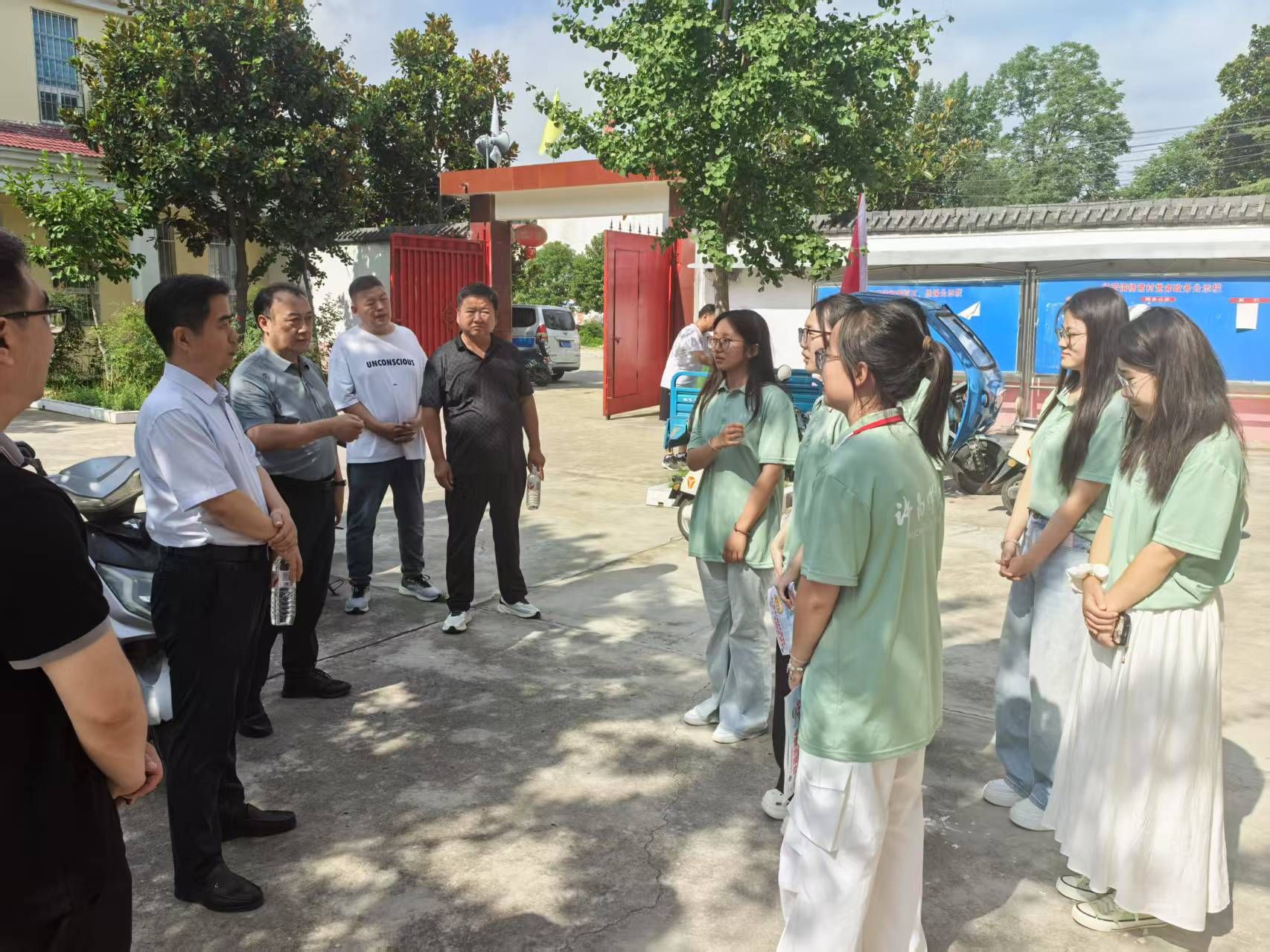 在许昌市建安区椹涧乡岗杨村,梁予昉一行到实地查看了实践团队活动开展、生活保障等情况,并与实践团队队员和椹涧乡政府负责人进行座谈交流。他鼓励同学们要坚持知行合一,将课堂所学与社会实际紧密结合,在实践过程中体察国情民情,感悟时代发展脉搏;要勇于担当作为,充分发挥专业特长和青年智慧,在服务地方发展中展现新时代青年的价值追求;要强化安全意识,务必遵守实践纪律和当地规定,加强风险防范,做好防暑降温等防护措施,确保实践活动圆满顺利完成。