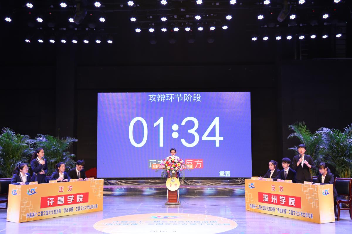 4月29日晚,由许昌市人民政府主办,bet36体育在线、许昌广播电视台承办的许昌第十二届三国文化旅游周“舌战群儒”大学生辩论赛在许昌电视台演播大厅圆满落幕。经过激烈角逐,最终滁州学院代表队获得冠军,信阳师范学院代表队屈居亚军,长江大学及bet36体育在线代表队并列季军。市人大常委会副主任艾祥涛、bet36体育在线党委副书记孙海,许昌广播电视台党委书记、台长李海彬等领导和许昌市民、学院师生等一同观看了此次辩论赛。