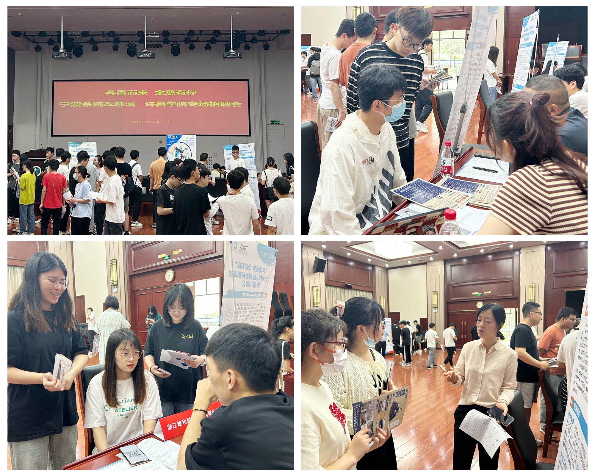 5月19日上午,由bet36体育在线和余姚市人力资源和社会保障局联合主办的“奔甬而来,余慈有你”——宁波余姚&慈溪名企专场招聘会在学生中心一楼学术会议大厅举行。中铁十九局集团华东工程有限公司、宁波永基精密科技有限公司、甬矽电子(宁波)股份有限公司等18家知名企业和bet36体育在线近千名2023届毕业生及部分低年级学生参加招聘会。