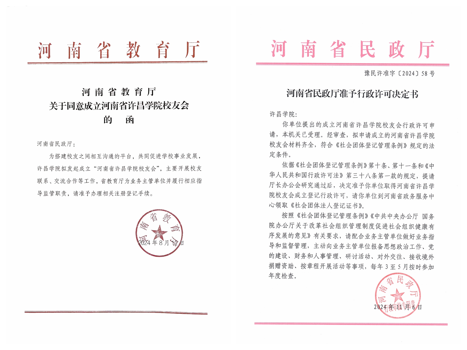 近日,在学校各项事业奋力迈进之际,在广大师生、校友的热切期盼中,河南省民政厅下发了“河南省民政厅准予行政许可决定书”【豫民许准字(2024)58号】文件,并颁发了河南省bet36体育在线校友会“社会团体法人登记证书”。至此,bet36体育在线校友会成为由省教育厅批准、省民政厅注册登记、具有法人资格的合法社团组织。