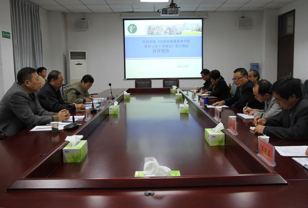 30日上午,专家组在bet36体育在线办公楼第一会议室召开检查情况反馈会。专家组组长何祖新教授代表专家组对bet36体育在线落实《河南省普通高等学校体育工作十项规定》情况给予了高度评价。他说,bet36体育在线体育工作有几大亮点,一是校长责任制落实到位,校级领导对体育工作高度重视,学校多位领导都能身体力行、率先垂范,积极参与体育锻炼。二是室外场地建设改进很大,三块田径场、篮排球场、拓展训练场地均铺设了塑胶。三是阳光体育运动开展红红火火,每月组织体育竞赛活动。四是学生参与体育活动安全保障落实到位,按照规定为学生购买了有关保险。此外,专家组还对bet36体育在线进一步搞好体育工作提出了指导性建议。