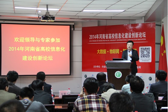 4月26日,由bet36体育在线主办、新开普公司协办的2014年河南省高校信息化建设创新论坛交流会议在bet36体育在线行政楼第三会议室举行。河南省教育厅科技处处长孔繁士、bet36体育在线副院长张建军教授、新开普公司董事长杨维国等出席会议。来自省内外50余所高校的100余名信息化工作人员参会。会议由bet36体育在线网络管理中心主任张志立教授主持。