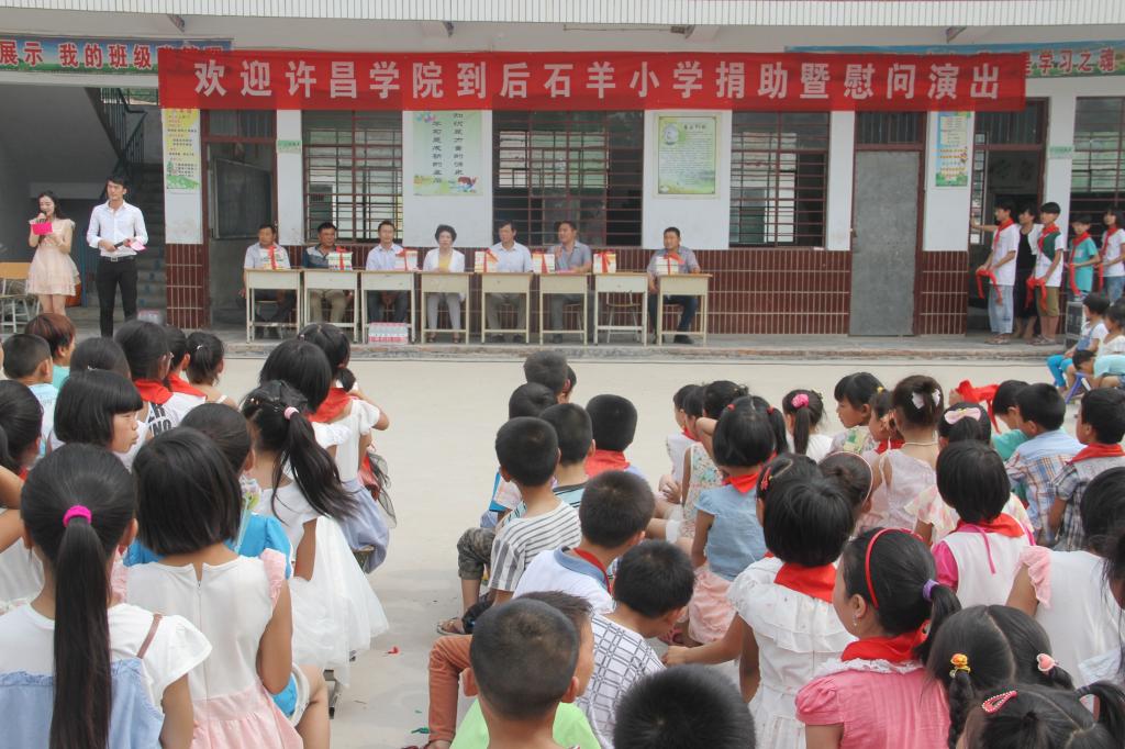 捐赠仪式后,罗书记一行和后石羊村小学的老师和同学一同观看了慰问演出。(摄影:宁智沛)