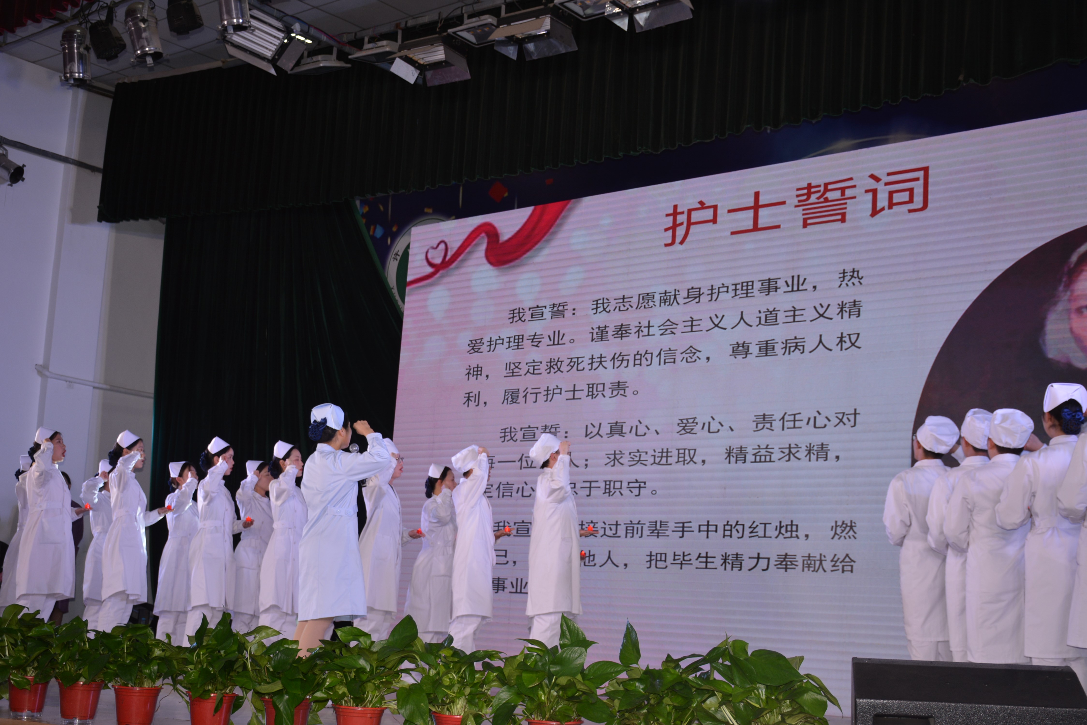 本次庆典以“我们的护士 我们的未来”为主题。仪式上,医学院负责人向护生们送上谆谆寄语,希望她们不负韶华、增长知识和才干,秉承人道主义精神,用自己所学造福社会。在庄严而舒缓的乐曲声中,3位来自一线的护理专家为护生代表传光授帽,全体护生在南丁格尔像前庄严宣誓。圣洁而美丽的烛光,洁白而优雅的燕尾帽,铿锵而有力的誓言,彰显了护理学子的坚定和担当。