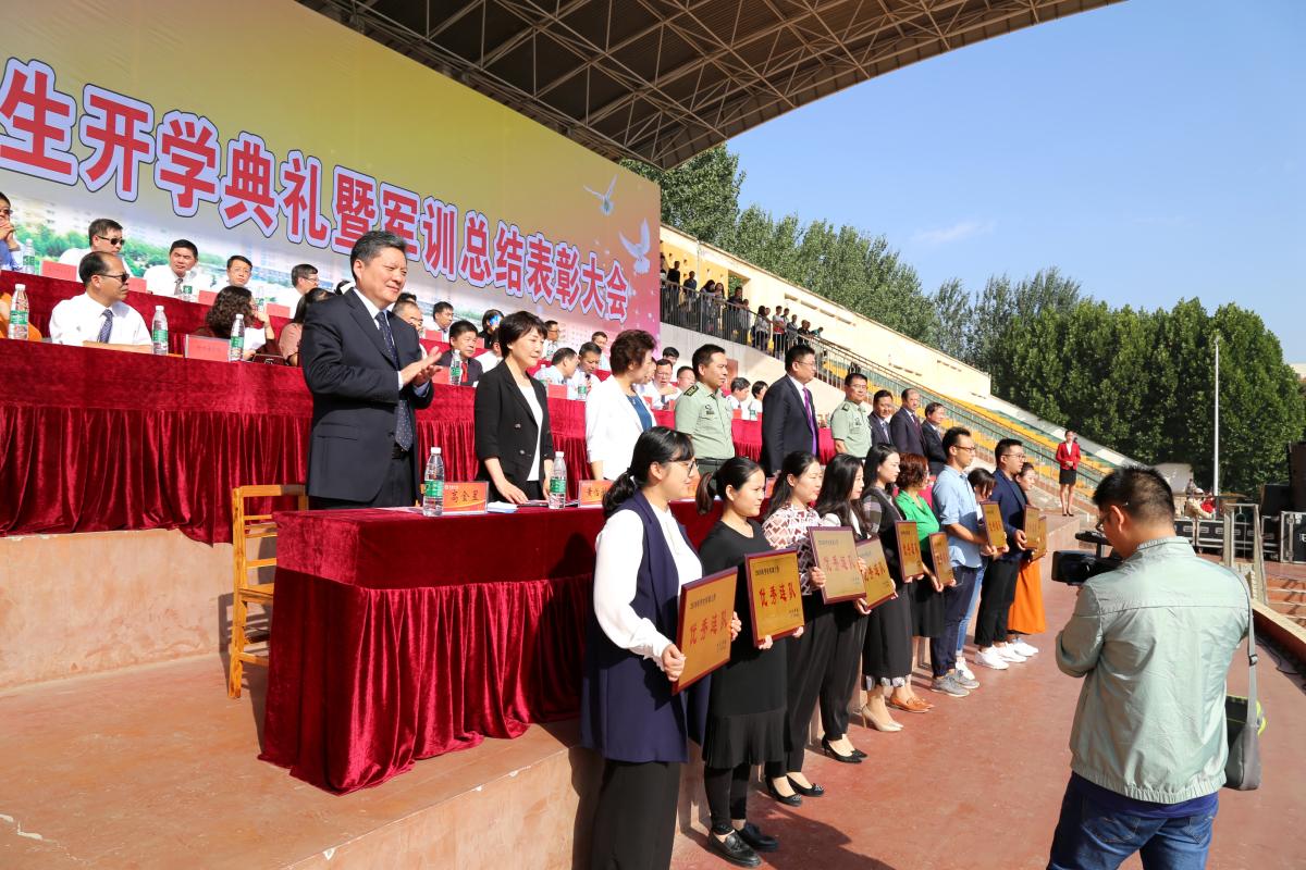 9月21日上午,bet36体育在线在学校羽飞田径场举行2018级新生开学典礼暨军训总结表彰大会。校党委书记闫纪建、校党委副书记孙海、纪委书记罗凤英、副院长崔斌、黄怡俐、郭涛,工会主席高金星出席大会。许昌军分区战备建设处处长陈福星、魏都区武装部政委牛听甫也出席活动并在主席台就坐。学校机关各部门和二级学院负责人、各团总支负责人、辅导员(班主任)和全体2018级新生共同参加会操活动和开学典礼。仪式由党政办公室主任潘春彩主持。