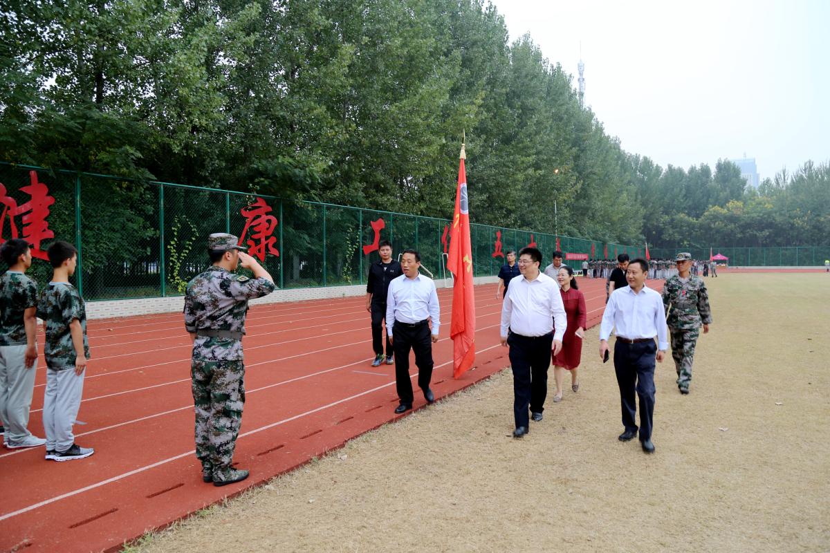 9月17日下午,党委书记闫纪建、副书记孙海在承训负责人和党政办公室、党委宣传部、团委、学生工作(人武部)、保卫处等相关部门负责人的陪同下来到新生军训现场,视察bet36体育在线2018级新生军训情况。