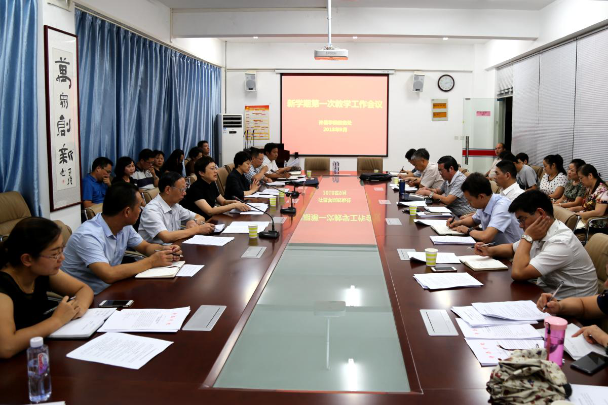 会上,赵继红院长对新学期教学工作进行总体部署,并对当前学校教学工作提出了几点具体要求。一是要站位全局,做好一个顶层设计。二级学院肩负重任,工作任务繁重,要从专业学科建设、师资队伍建设、教学质量工程项目、教研项目等方面统筹考虑、提前谋划,做好顶层设计工作。二是要围绕一个中心,即以学生为中心。人才培养是学校的首要职能,育人是学校的中心工作,要本着“以学生为中心、成果为导向”“全方位育人”的原则,一切工作均要围绕坚持立德树人、促进应用型人才培养来展开。三是要搭建一个平台,即产教融合协同育人的平台。大学必须与地方与社会互动,为地方经济社会发展提供人才和科技创新支撑的同时,获得地方资源来支撑学校发展。学校应该积极吸纳社会对学校人才培养工作的要求和建议,借助行业的力量和资源培养应用型人才。四是要注意一个问题,即内涵、特色的落实与凝练问题。要转变观念,更加关注专业建设的质量,项目内容的提升、学生培养的质量、平台建设的效益等,改善硬件、提升软件,把工作重心转向内涵建设上来。同时,要善于总结凝练人才培养过程中有创新、有特色的做法,逐步形成人才培养的特色与文化。
