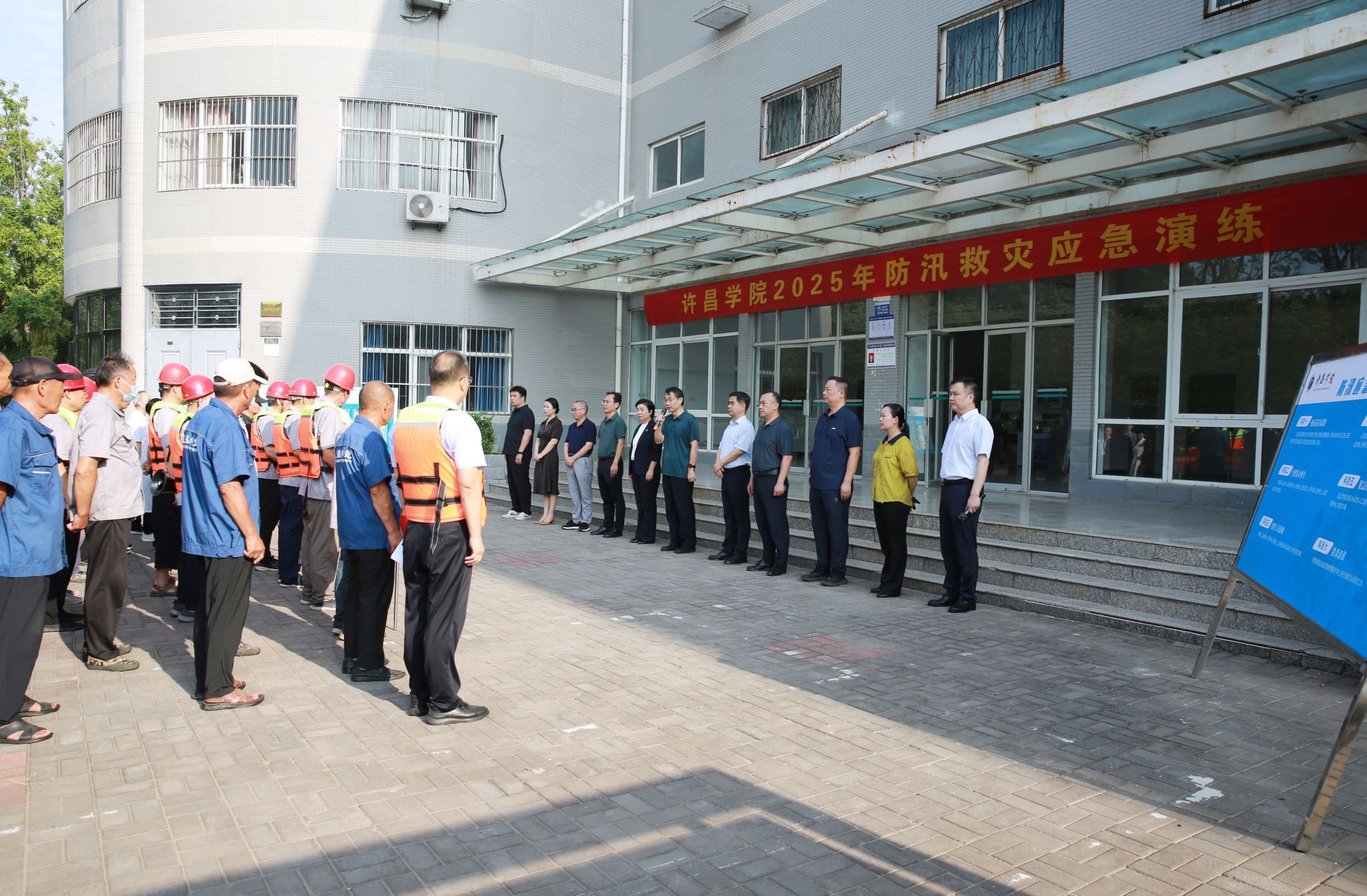 7月9日上午,bet36体育在线组织开展2025年防汛救灾应急演练。校长郑直,副校长冯晓民、赵艳敏到现场观摩指导。党委办公室(维稳工作办公室)、党委组织部、党委宣传部、院长办公室、保卫处、基建管理处、后勤管理服务中心、兴华路校区管理委员会等相关部门负责人及学校防汛应急救援队参加演练。
