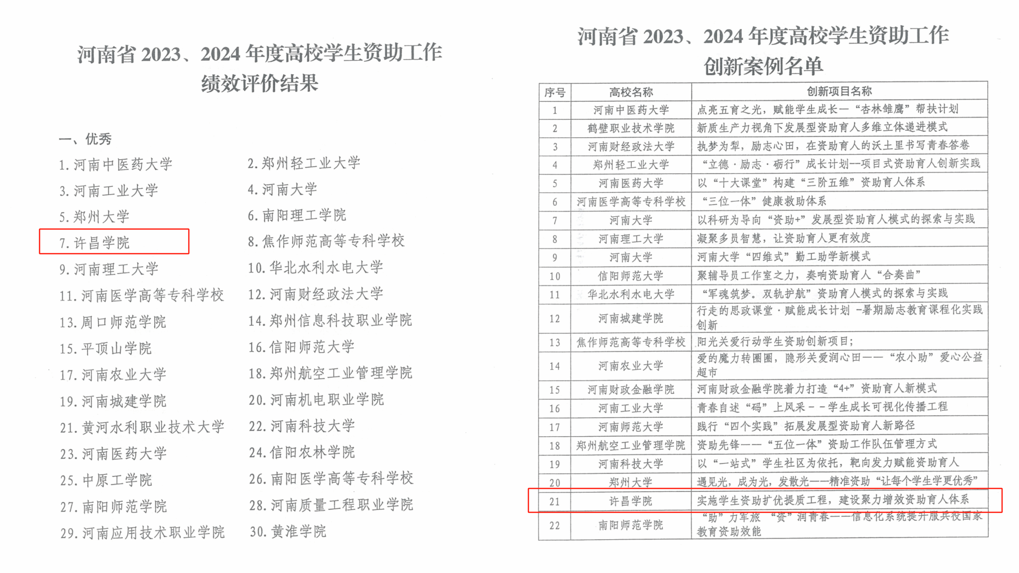 近日,河南省教育厅、国家开发银行河南省分行联合下发《关于公布全省学生资助工作绩效评价结果的通知》(教资助〔2025〕158号),bet36体育在线再次荣获全省高校学生资助工作绩效评价“优秀”等次,《实施学生资助扩优提质工程,建设聚力增效资助育人体系》项目获评高校学生资助工作创新案例。这也是bet36体育在线自2017、2018年度以来连续8年获评全省高校学生资助工作绩效评价“优秀”等次,绩效评价排名逐年提升。