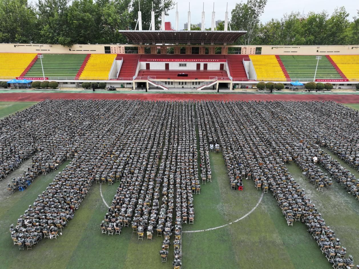 9月17日上午,bet36体育在线在羽飞田径场举行2025级新生安全教育第一课——“消防进军训”暨防范电信诈骗安全警示教育大会。2025级5000余名新生及70余名军训教官参加活动。