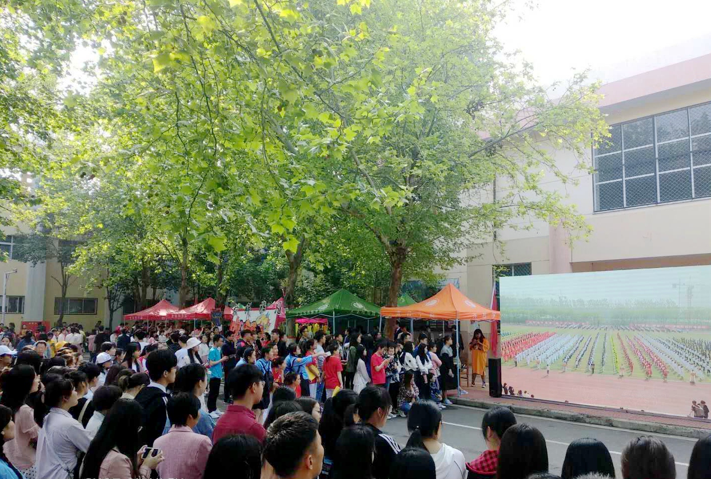 为使广大师生更好地了解运动会开幕盛况,校党委宣传部(新闻中心)、公共实验中心对开幕式进行了多机位、全方位的网络全程直播。整个直播过程画面清晰、语音清楚、传输流畅,引发了校内外广泛关注。在网络直播的同时,学校弘毅广场、羽飞田径场外大屏幕也进行了同步直播,吸引了众多师生围观。(图文统筹:钟伟平 宁智沛 摄影:学生记者 孟千群 葛芷君 杨号 段云飞 何辰 赵晓晴 龚常委)