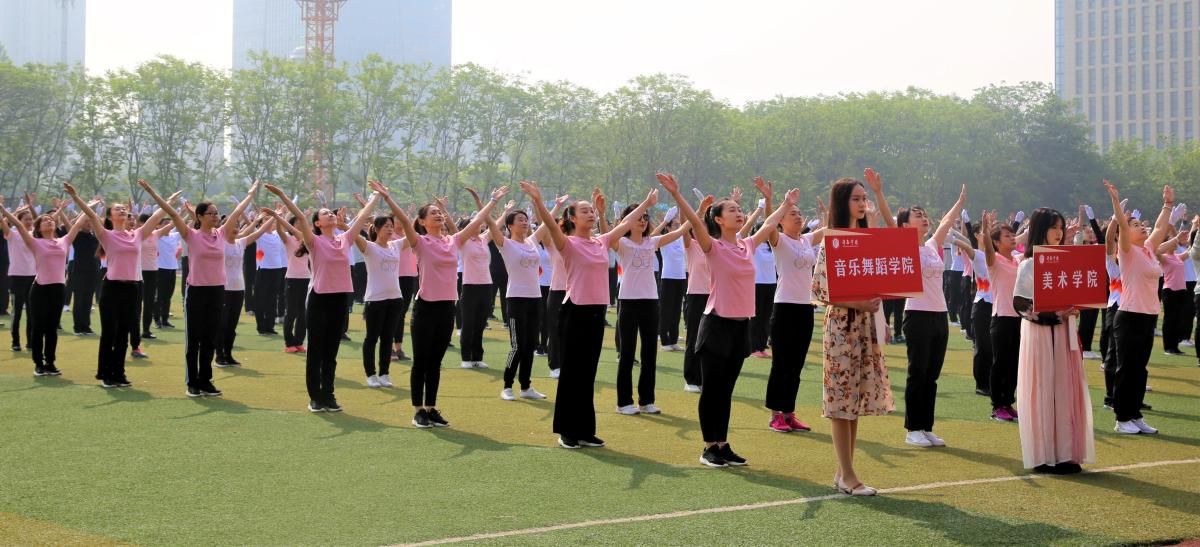 开幕式上,教职工代表队进行了大众广播操(工间操)比赛,二级学院学生代表队进行了武术健身操“英雄少年”的比赛。
