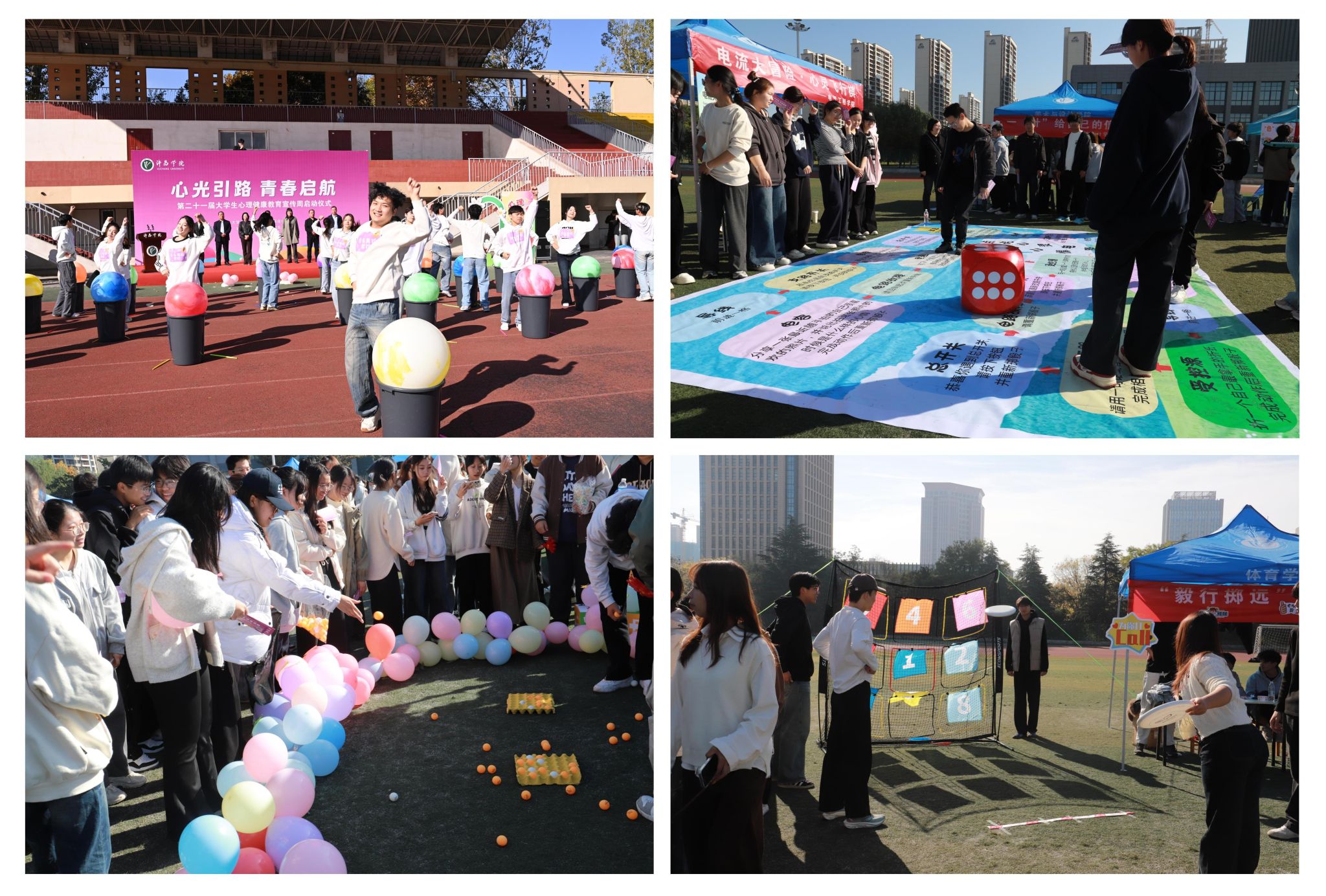 启动仪式后,举行了首届心理游园会与第二届心理素质拓展运动会。许昌市建安医院和各二级学院设置了“枕”救不开心、电流大冒险·心灵飞行棋、医学养生操·元气充电站、节奏共鸣·心灵共舞等20余项沉浸式体验活动,吸引近千名学生参与。在下午心理素质拓展运动会中,各二级学院代表队围绕“极速毛毛虫”“袋鼠跳”“纸杯传递”等项目展开角逐,赛场上,学子们默契配合、奋力拼搏,展现出团结向上的精神风貌与顽强意志。