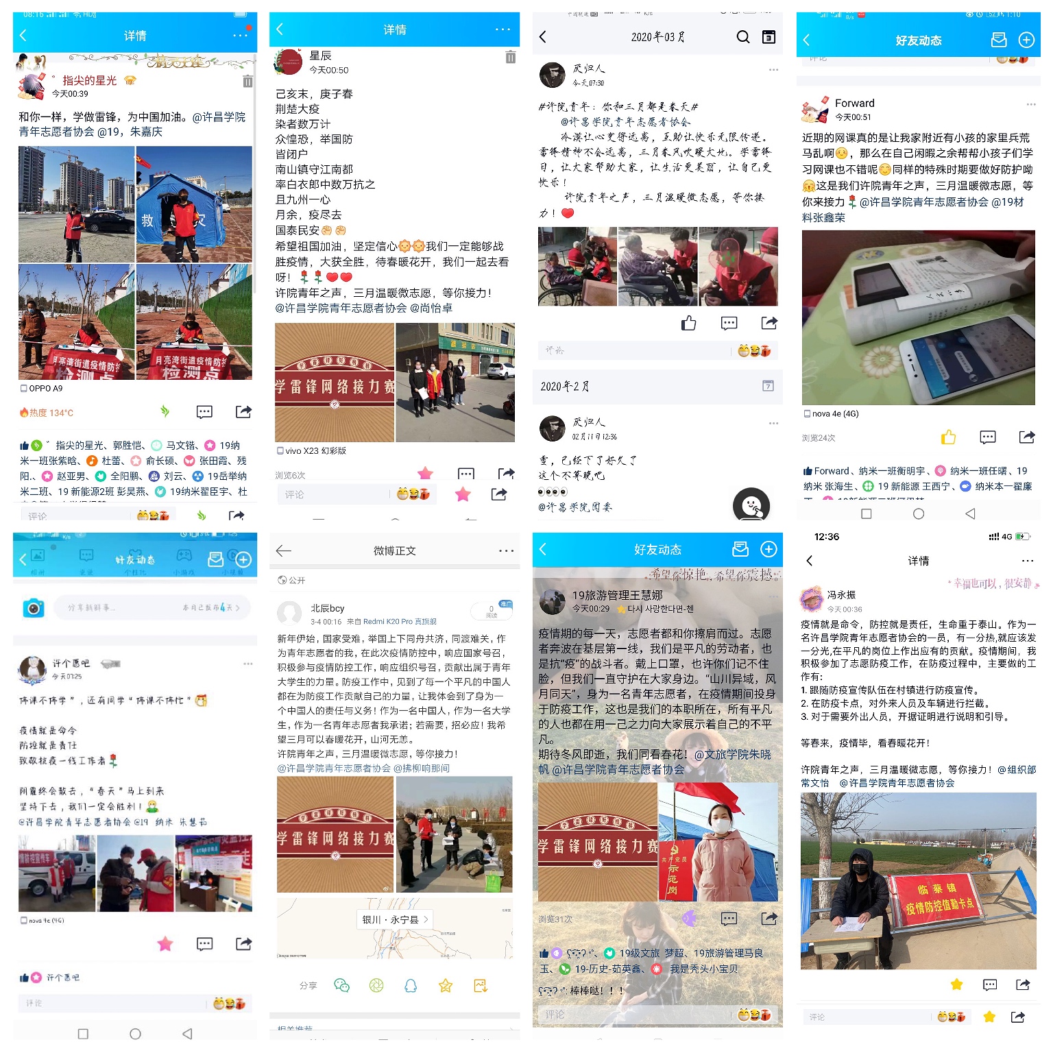 在广大返乡抗“疫”志愿者的示范带动下,以雷锋纪念日为契机,青年志愿者协会通过“学雷锋”网络接力、“寻找身边的雷锋”、写给雷锋的三行诗等线上志愿服务活动,积极宣传抗“疫”志愿者优秀事迹,在全校学生中间营造了良好的学习雷锋网络文化氛围,将雷锋精神进一步传递到许院学子心间。