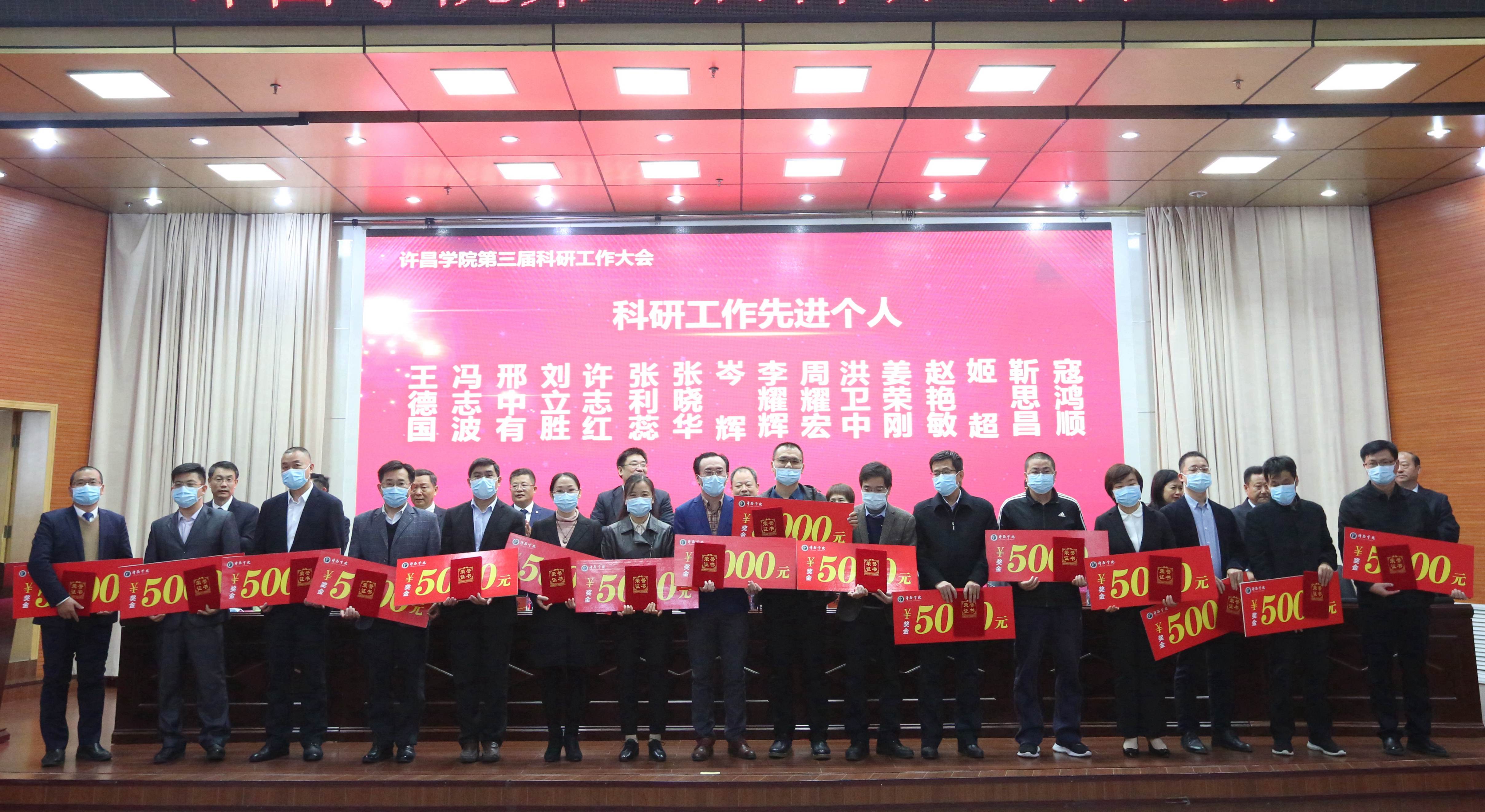 党委副书记孙海宣读了《关于表彰科研工作先进单位、先进个人和科研管理工作先进个人的决定》和《关于对2019年度高层次及应用性科研成果进行奖励的决定》。与会领导分别为10个科研工作先进单位、16个科研工作先进个人、9个科研管理工作先进个人颁发了奖牌和证书。