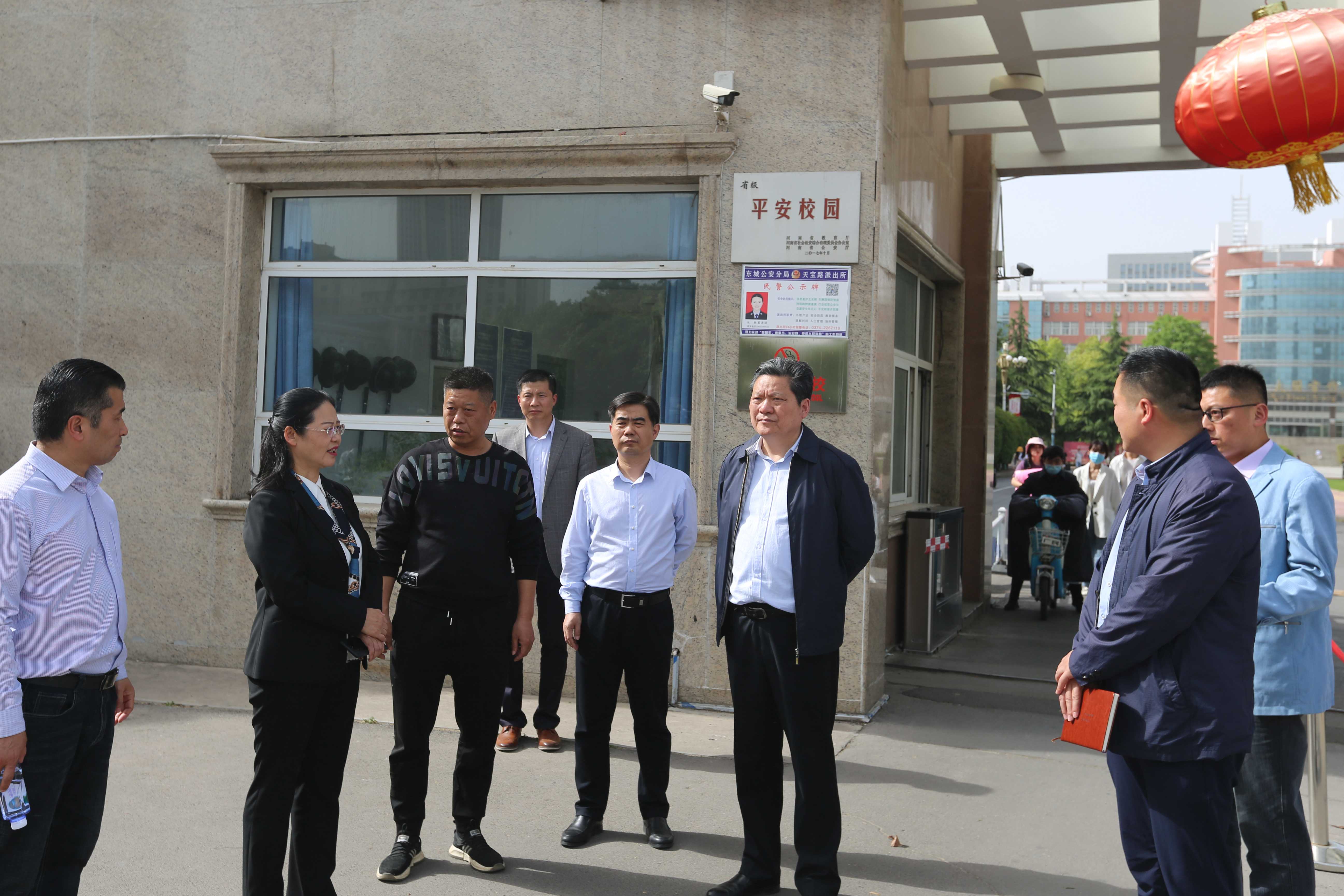 4月30日下午,副院长高金星、潘春彩带队检查指导学校五一节前各项校园安全和疫情防控工作落实情况。党政办公室、后勤管理服务中心、学生工作处、保卫处等相关部门负责人陪同。