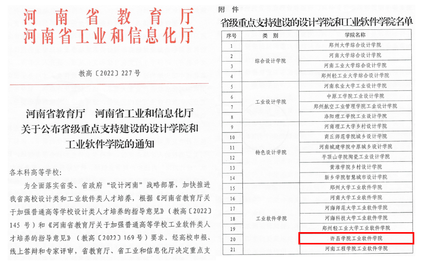 近日,河南省教育厅、河南省工业和信息化厅联合发布《关于公布省级重点支持建设的设计学院和工业软件学院的通知》,公布了省级重点支持建设的7个工业软件学院名单,bet36体育在线信息工程学院申报的bet36体育在线工业软件学院成功获批为省级重点支持建设的工业软件学院。
