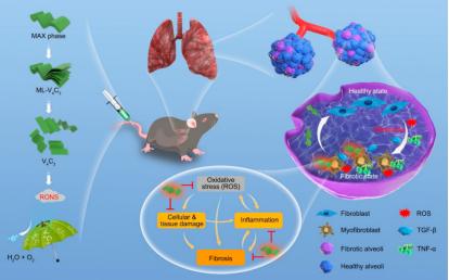 近日,bet36体育在线化工与材料学院纳米催化材料与应用团队在高效抗氧化纳米酶设计及肺纤维化治疗研究领域取得重要进展,相关研究结果以“Vanadium Carbide Nanosheets with Broad-Spectrum Antioxidant Activity for Pulmonary Fibrosis Therapy”为题发表在美国化学会纳米科学TOP期刊《ACS Nano》(ACS Nano, 2023, DOI: 10.1021/acsnano.3c06105),影响因子为17.1。