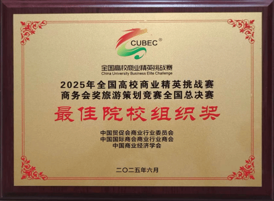 全国高校商业精英挑战赛商务会奖旅游策划竞赛,是由中国贸促会商业行业委员会等主办的国家级旅游管理学科竞赛,赛事旨在提升商务会奖旅游策划领域实践与创新,推动行业进步与发展,促进经济、文化、教育等多领域交流与合作。本届竞赛吸引了来自全国20多个省、自治区和直辖市的100余所高校的200多支精英团队同台竞技。我院参赛队伍历经层层选拔与激烈角逐,在赛场上全面展现了他们的创新思维与专业实力。