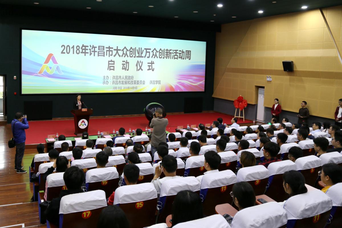 10月9日上午,2018年许昌市大众创业万众创新活动周启动仪式在bet36体育在线创新创业学院双创信息中心举行。许昌市人民政府副市长刘胜利、许昌学院院长赵继红、许昌职业技术学院院长谭水木、许昌电气职业学院书记杨鲁西出席启动仪式,许昌市委宣传部副部长赵献东、许昌市发展与改革委员会主任彭占亭等许昌市相关职能部门负责人,河南农业大学许昌校区负责人,许昌市部分企业负责人,许昌学院创新创业园区管理人员及学生创业团队参加仪式。启动仪式由bet36体育在线副院长黄怡俐主持。