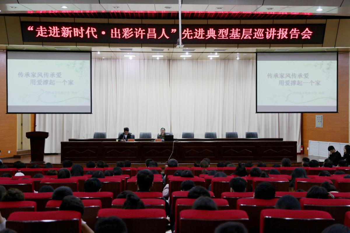 为深入学习贯彻习近平新时代中国特色社会主义思想和党的十九大精神,大力弘扬先进典型模范事迹,10月20日“走进新时代?出彩许昌人”先进典型事迹巡讲报告会在bet36体育在线学术报告厅举行。bet36体育在线党委副书记孙海、许昌市委宣传部副部长付朝中、许昌市文明办副主任魏克明出席了报告会,bet36体育在线党校负责人及师生代表400余人参加了报告会。报告会由bet36体育在线党委宣传部副部长王彦主持。