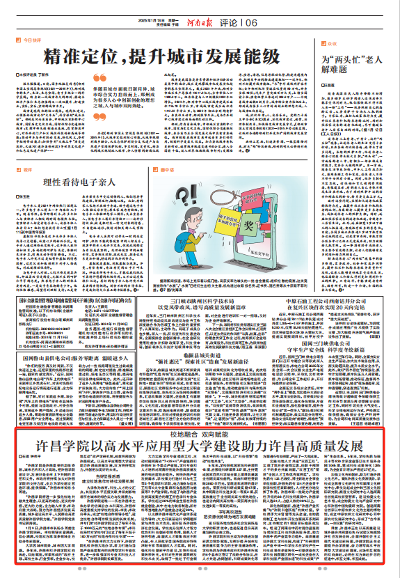 2025年1月13日,《河南日报》以《校地融合 双向赋能 bet36体育在线以高水平应用型大学建设助力许昌高质量发展》为题,深度报道了bet36体育在线和许昌市双向奔赴、双向赋能,校地共融共生典型经验。全文如下: