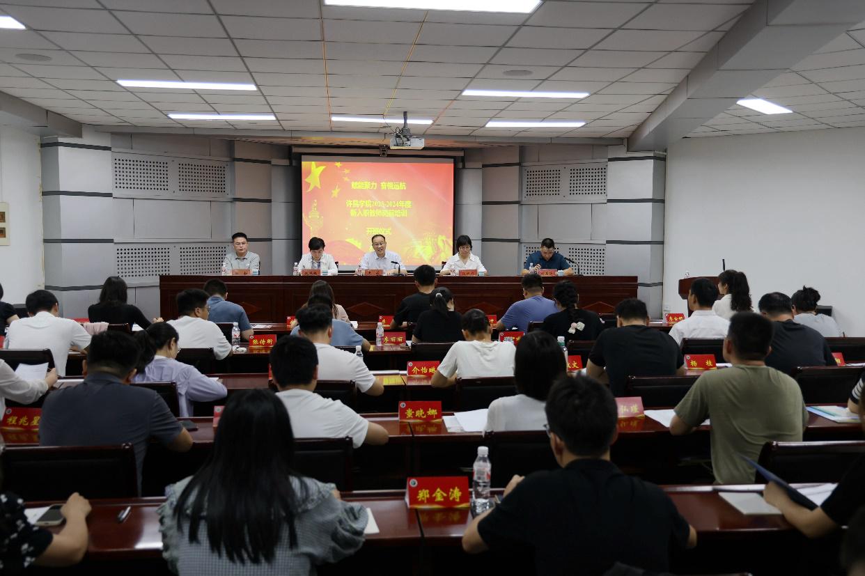 王俊代表学校向新入职教师表示热烈欢迎,并介绍了学校的历史沿革、事业现状及发展愿景。他指出,学校始终把人才工作放在事关学校发展全局的战略位置,不断健全人才引育模式,完善教师全生涯周期发展机制,构建“新手—新秀—骨干—名师”的培训培养体系。他向新入职教师提出四点要求。一是言为士则、行为世范的师德情操是广大教师必须具备的品格素养,二是勤学笃行、求是创新的躬耕态度是广大教师必须践行的职业精神,三是乐教爱生、甘于奉献的仁爱之心是广大教师必须厚植的教育情怀,四是胸怀天下、以文化人的弘道追求是广大教师必须涵养的高远格局。