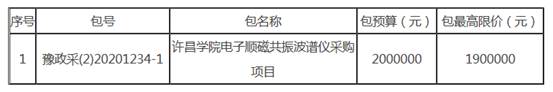 bet36体育在线电子顺磁共振波谱仪采购项目招标项目的潜在投标人应在河南省公共资源交易中心(http://www.hnggzy.com)获取招标文件,并于2020年09月23日09时00分(北京时间)前递交投标文件。