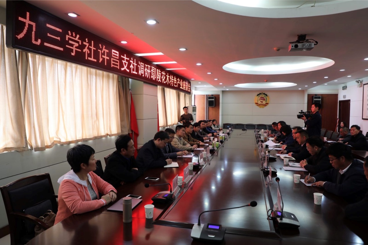 随后,双方召开工作座谈会。鄢陵县林业局、旅游局、康养办、花木交易中心与企业代表分别介绍了相关特色产业发展的总体规划和建设情况。双方就如何借助九三学社优势资源,紧密结合鄢陵实际,联合推进“中国花木之都”鄢陵花木产业、生态旅游、健康颐养产业综合升级做了深入交流探讨。双方还就引进九三专家人才,深入推进技术合作,在花木标准化建设、花木交易电子商务、新材料科研成果转化、园林绿化设计、文化休闲产业发展、中医药颐养基地打造等方面达成了初步共识。
