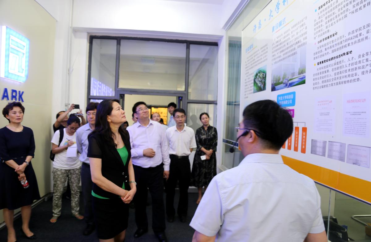 霍金花先后深入新材料与能源学院(表面微纳米材料研究所)、食品与生物工程学院、电气(机电)工程学院、创新创业学院、许昌大学科技园、工程技术中心实地考察。