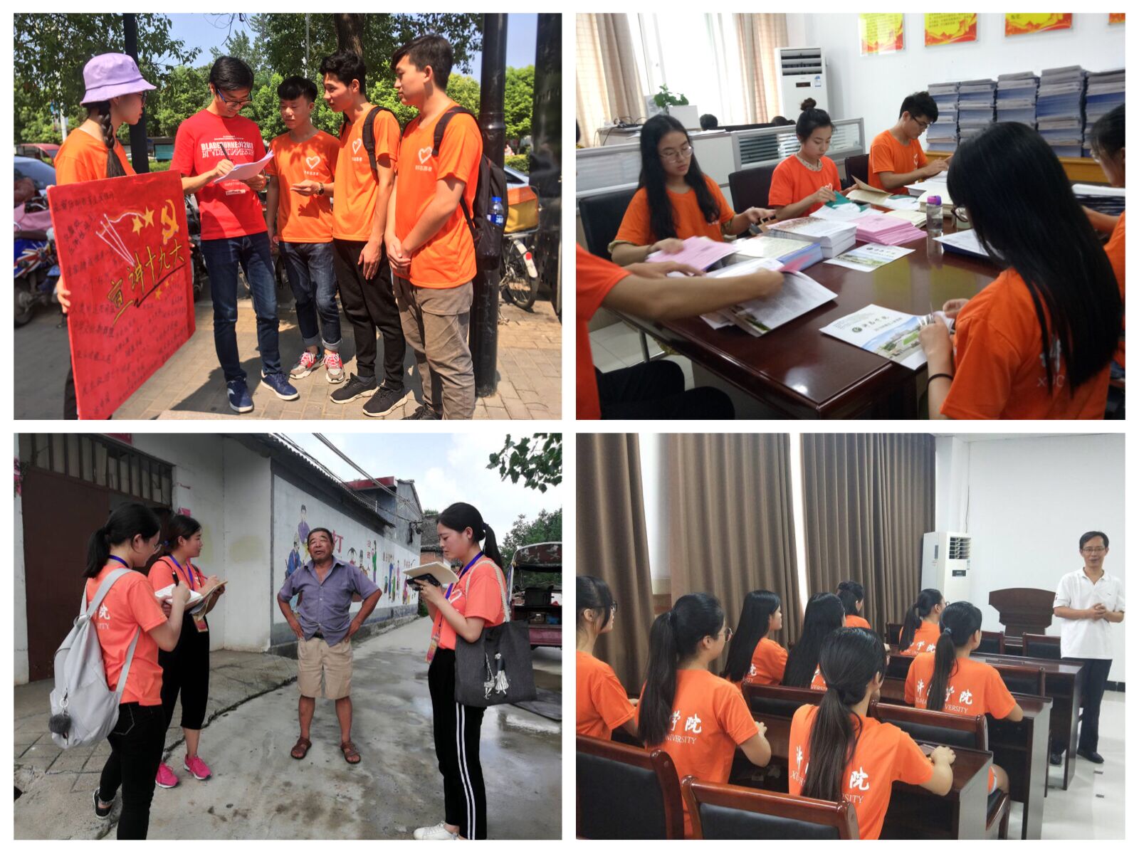 截止目前,bet36体育在线多支实践团队已圆满完成实践任务,队员们奔赴许昌市建安全袁庄村、禹州市苌庄乡毛栗沟村、鸠山镇张家庄村等多个贫困村镇,走进万像春天、祥瑞小区、恒大绿洲等多个居民社区,常驻鄢陵县人民法院、永新电器股份有限公司等多家企事业单位,深入绿园养老院、阳光儿童救助中心、高铁站、火车站等多个志愿服务基地,开展形式多样、内容丰富的实践活动,队员们共走访贫困户130余户,义务支教儿童300余名,维修家电800余件,开展专题调研20余项,取得了良好的阶段性实践成果。(图片由各实践队提供)