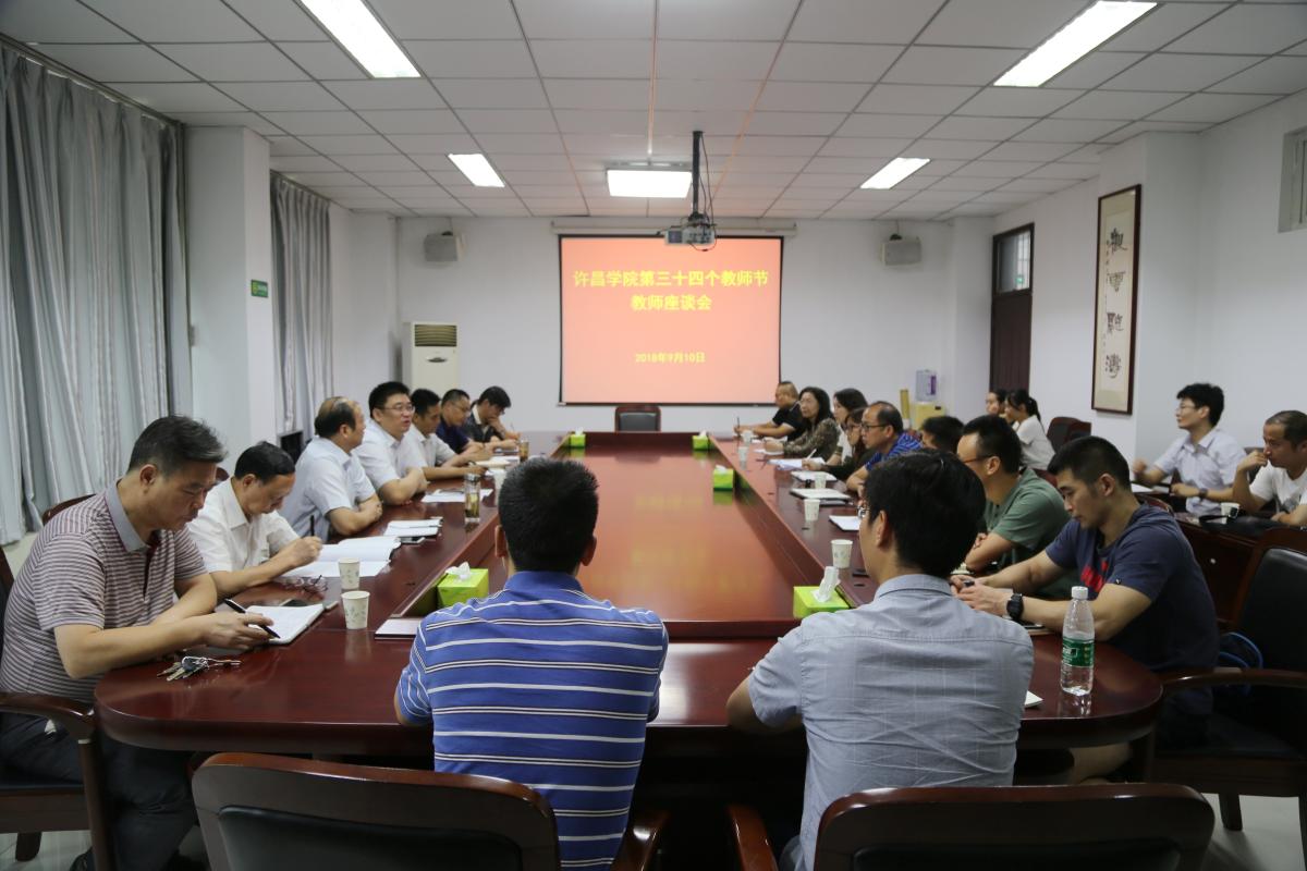9月10日教师节当天,bet36体育在线在办公楼第一会议室举行教师座谈会。校党委书记闫纪建、副院长崔斌与教师代表们齐聚一堂,庆祝第34个教师节。教师代表、人事处、教务处、科技处等部门负责人共30余人参加了座谈。副院长崔斌主持座谈会。