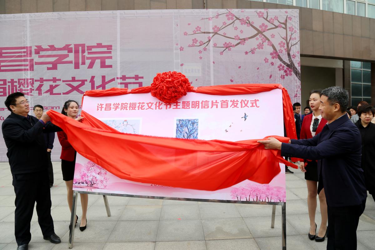 开幕式上,党委书记闫纪建、院长岳修峰共同为bet36体育在线樱花文化节主题明信片首发式揭幕。